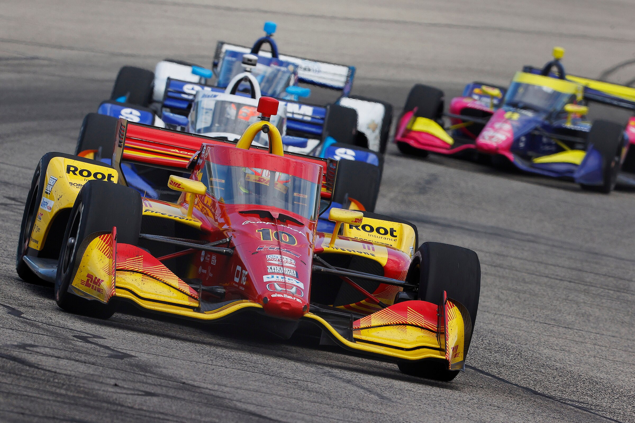Palou's Chip Ganassi Racing teammate Scott Dixon and Meyer Shank Racing's Marcus Armstrong both worked their way through the field to get top-10 results for Honda. Dixon started P14 and would cross the line ninth, while Armstrong drove from P16 to P10 at the line.